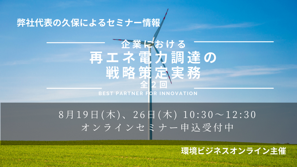 8月19日、26日開催!大人気セミナー「脱炭素ビジネス基礎講座『企業における再エネ電力調達の戦略策定実務』」